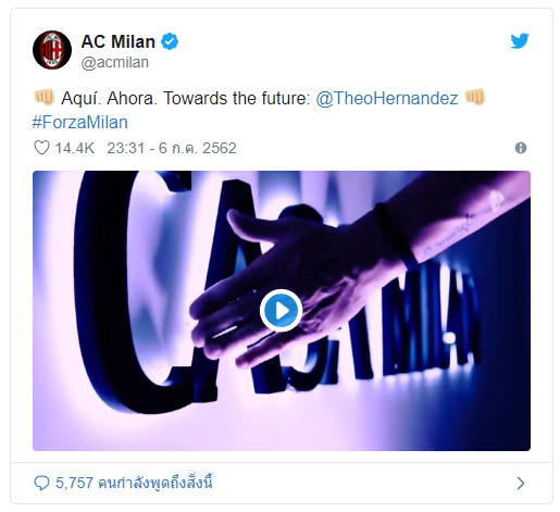 สโมสรฟุตบอล เอซี มิลาน บรรลุข้อตกลงคว้าตัว เตโอ เอร์นานเดซ แบ็คซ้ายดาวรุ่งชาวฝรั่งเศส ของสโมสรฟุตบอล เรอัล มาดริด ด้วยราคา 20 ล้านยูโร